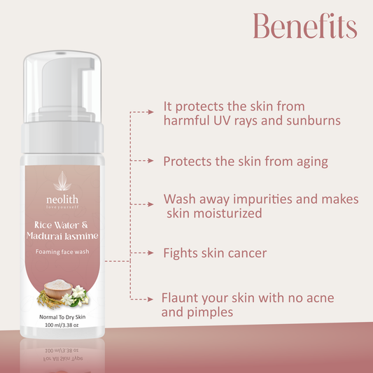 Neolith Rice Water & Madurai Jasmine Foaming Face Wash ||92% Organic || Natural Sunscreen, Skin Revitalise, Cleansing || 100 Ml