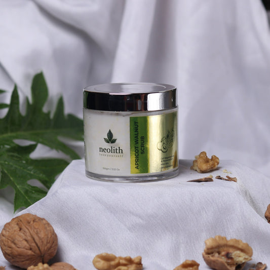 Neolith Apricot Walnut Face Scrub with Vitamin E and Almond oil (100gm) | Removes White heads, Black heads, Brightens skin, Removes excess oil | D Tan scrub, Lip scrub, Deep cleansing, Skin Revitalizing | For Dry/Normal Skin | For Men & Women
